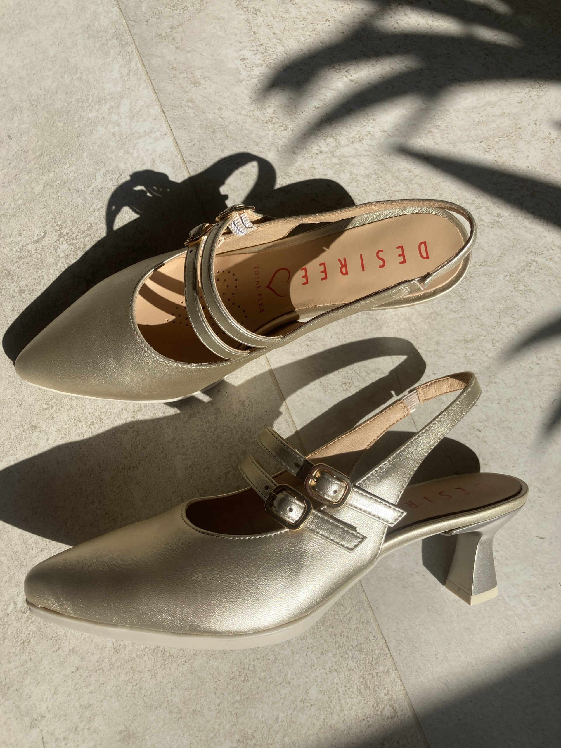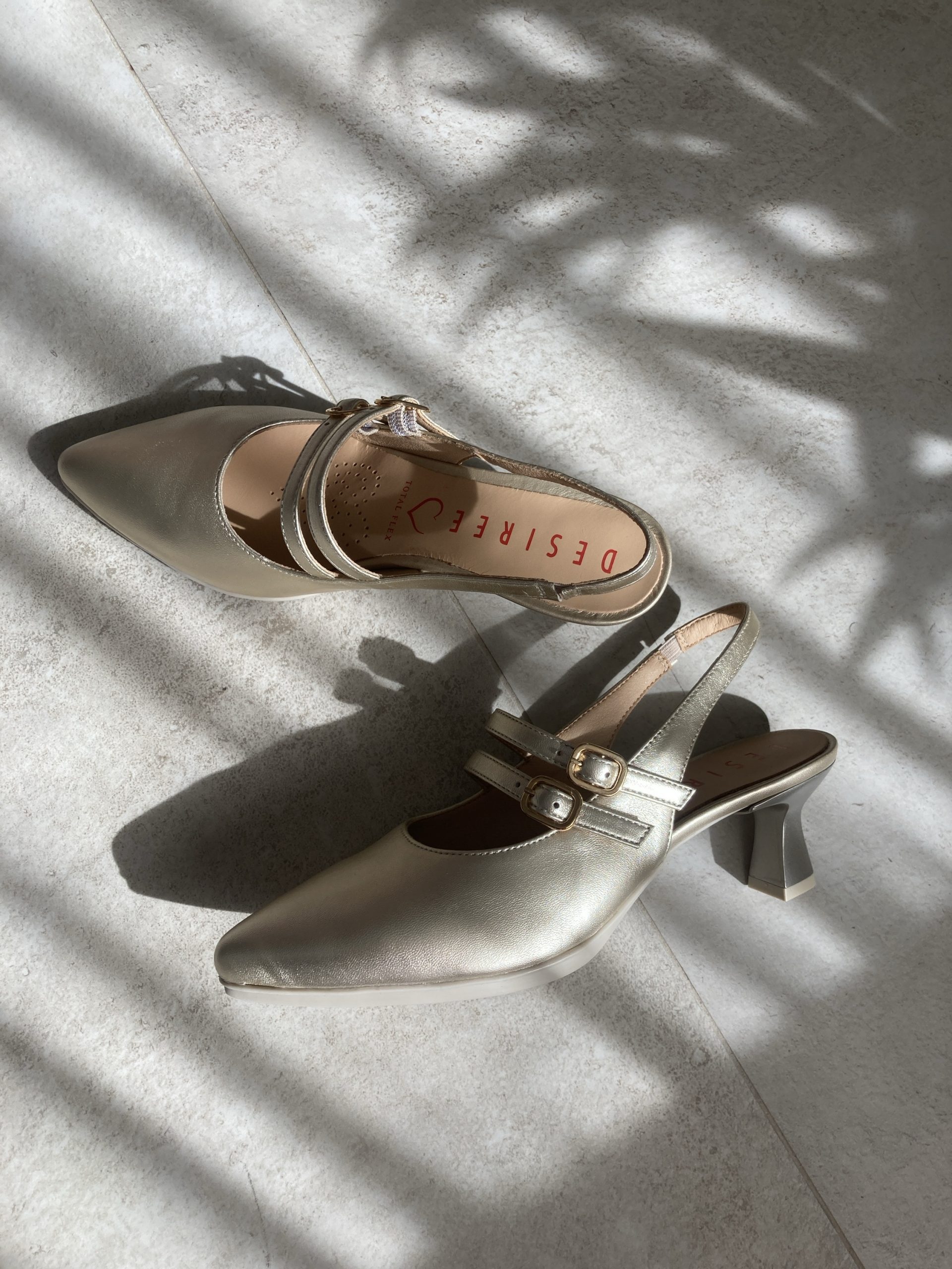 Desiree MACA6 Zapato destalonado 2 correas tacon 4,5 cm STAR PLATINO