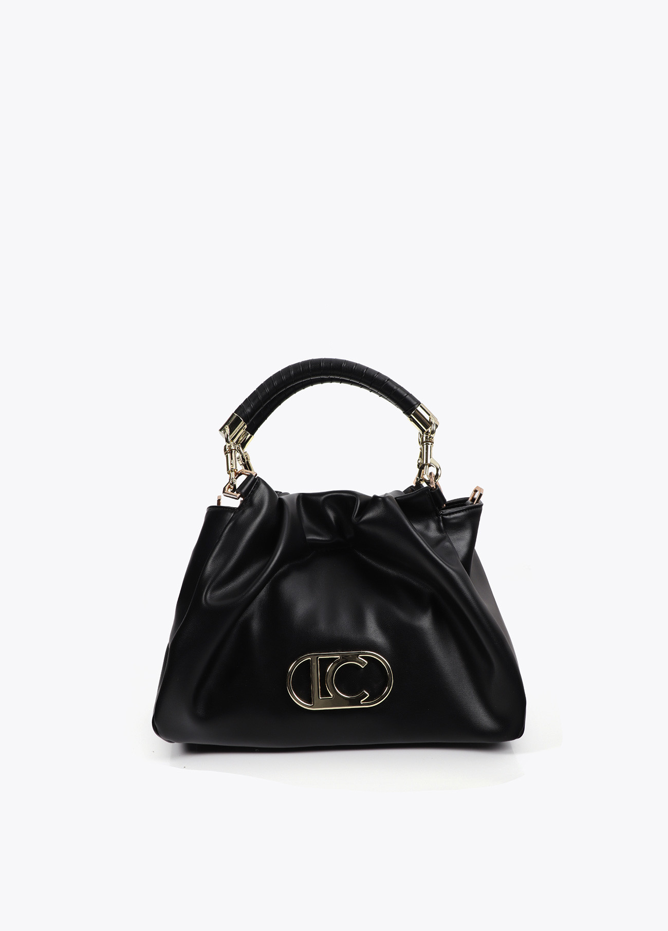 LOLA CASADEMUNT LF2504004 Bolso bandolera efecto piel con asa trenzada y detalles metálicos NEGRO