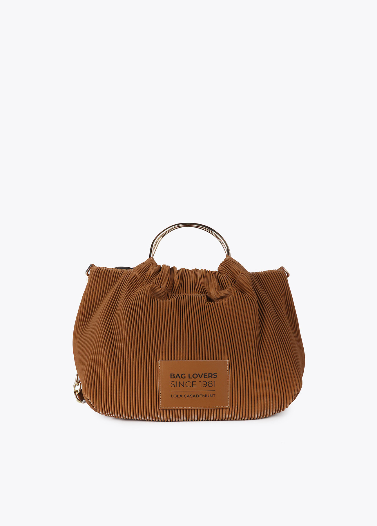 LOLA CASADEMUNT LF2504011 Bolso plisado efecto piel engomada con etiqueta “bags lovers” MARRON