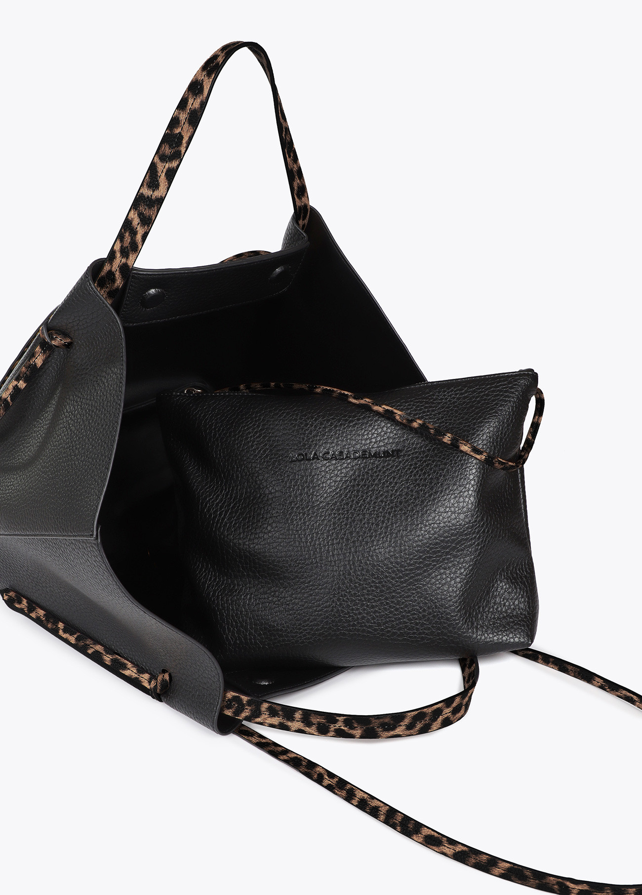 LOLA CASADEMUNT LF2504055 Bolso shopper detalles en efecto piel animal print NEGRO