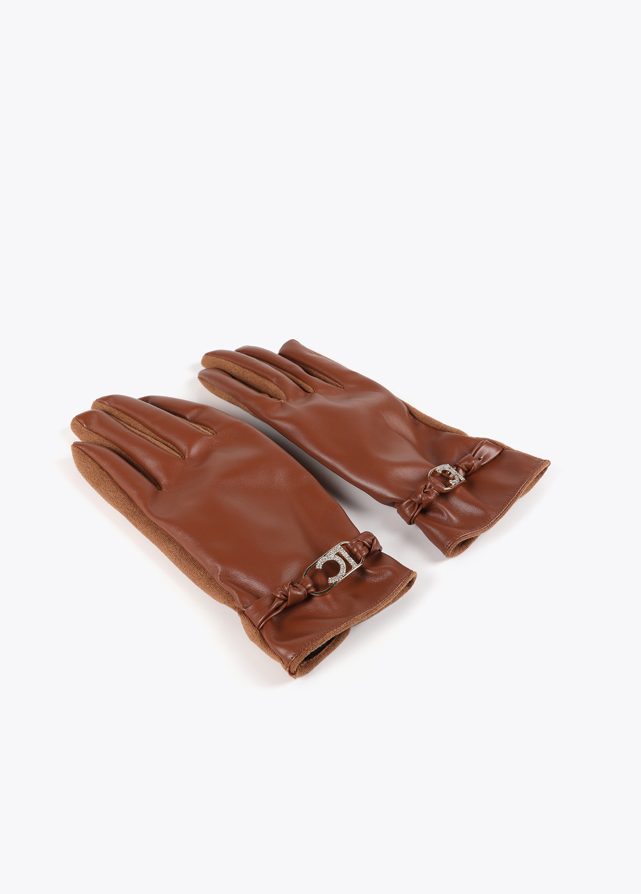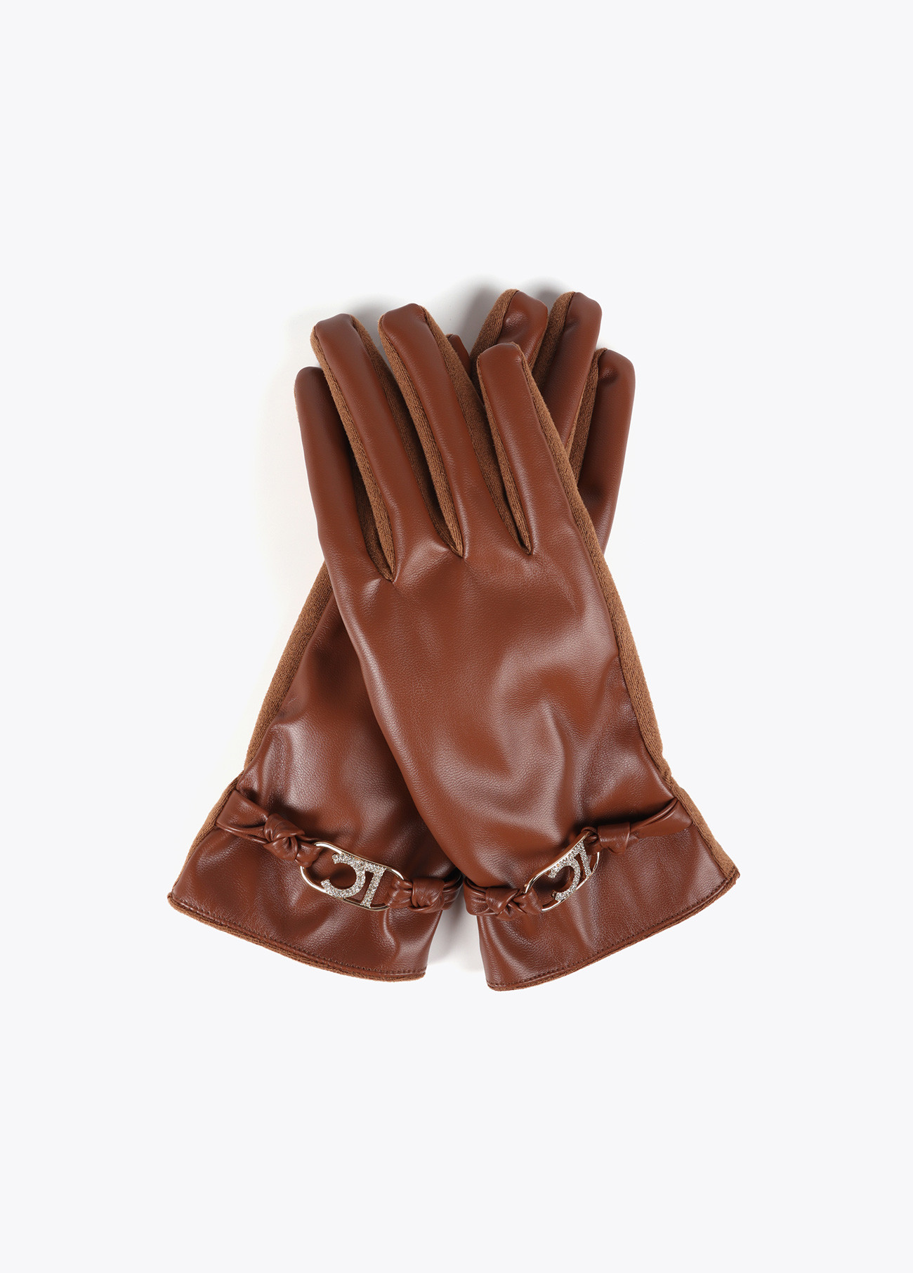 LOLA CASADEMUNT LF2507024 Guante efecto piel con pulsera logo ovalado MARRON