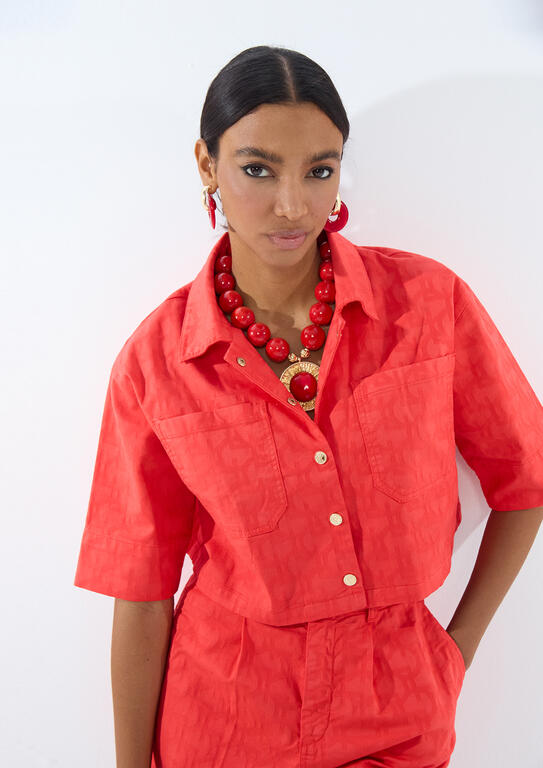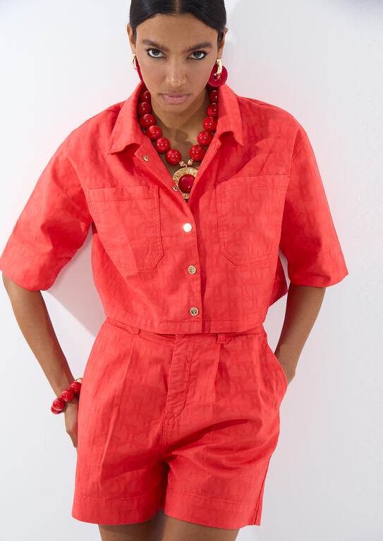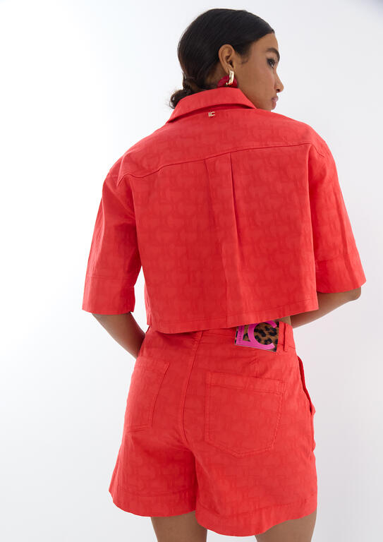 LOLA CASADEMUNT LS2602021 Sobrecamisa manga corta sarga logo jacquard LC CORAL