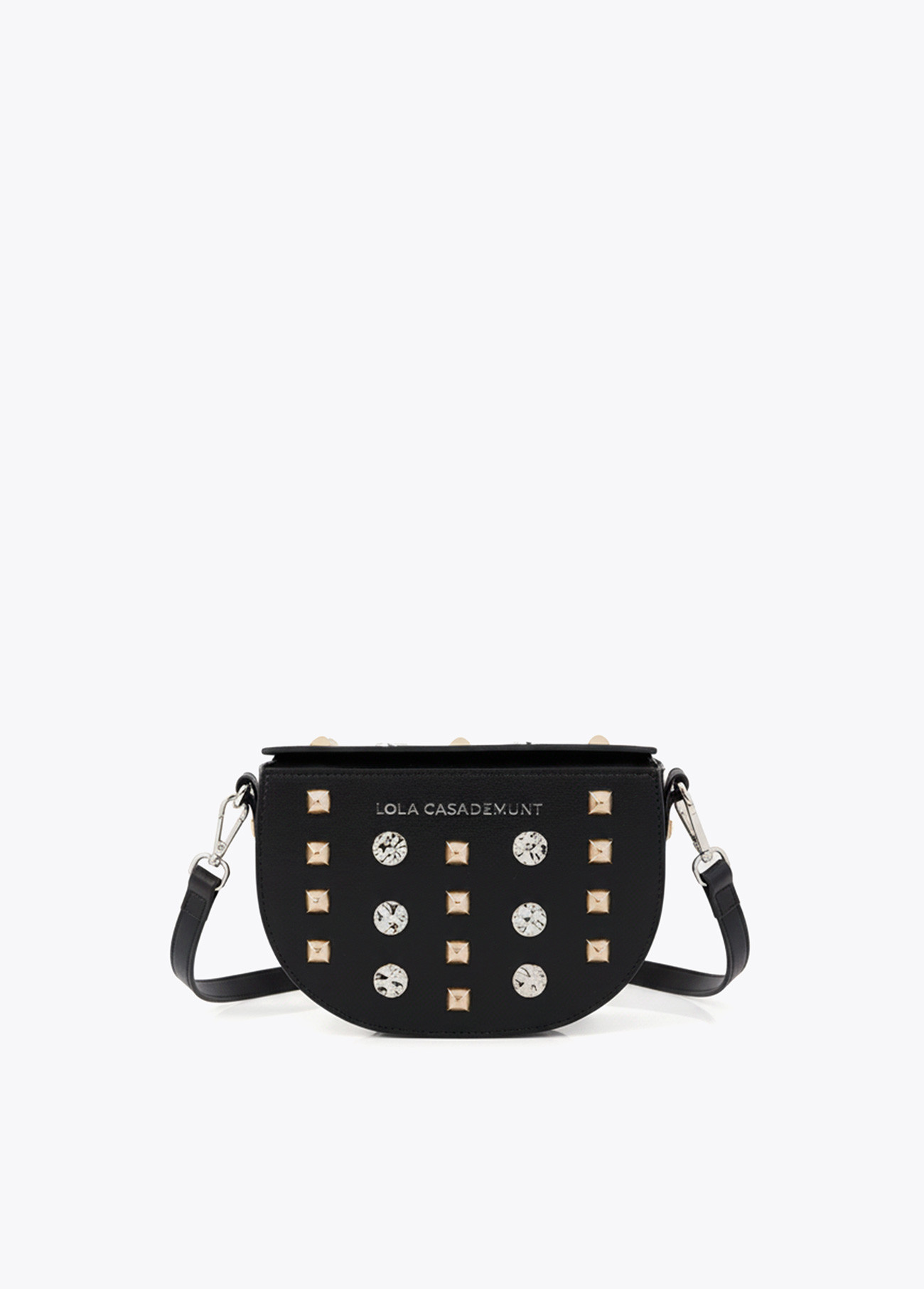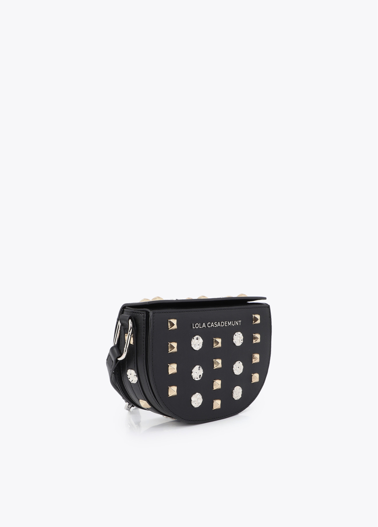 Sé el primero en valorar “LOLA CASADEMUNT LS2604051 Banana bag con tachas oro y plata NEGRO”