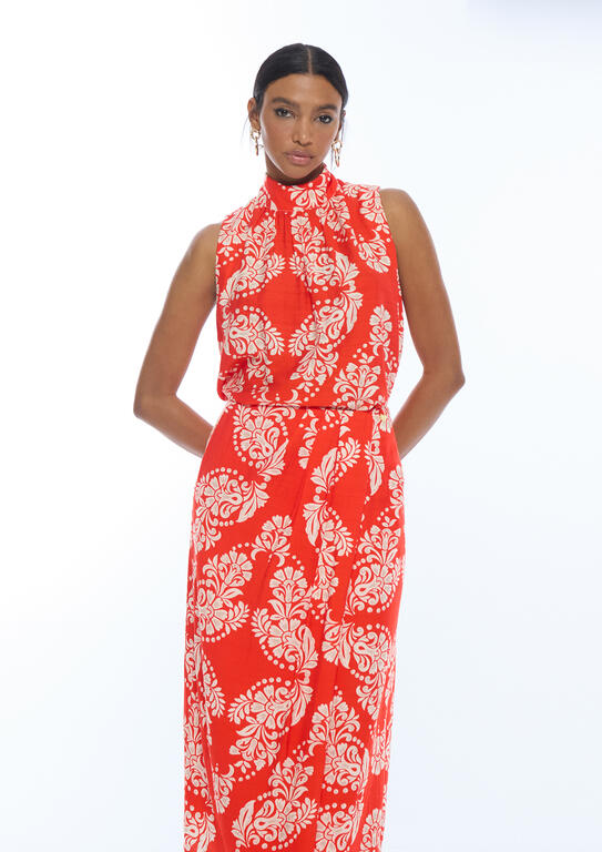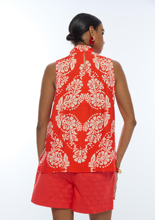LOLA CASADEMUNT LS2615091 Top cuello alto paisley ROJO-BLANCO