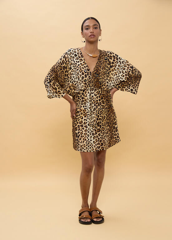 LOLA CASADEMUNT LS2616015 Vestido corto mangas anchas animal print MARRON-MULTICOLORLOLA CASADEMUNT LS2616015 Vestido corto mangas anchas animal print MARRON-MULTICOLOR