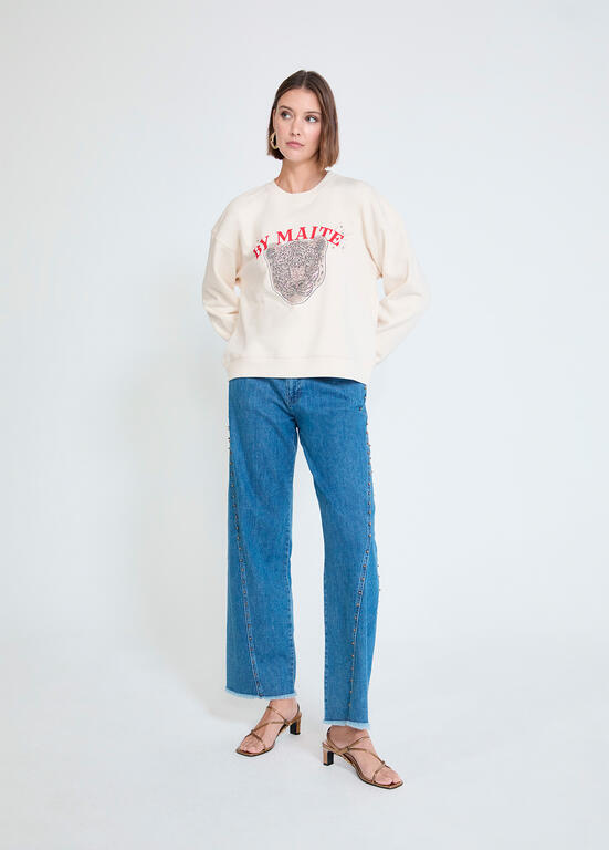 LOLA CASADEMUNT MS2611004 Sudadera animalito by maite con strass CRUDO