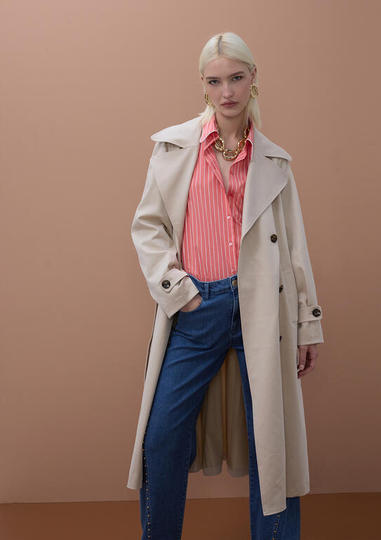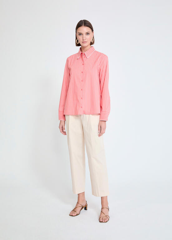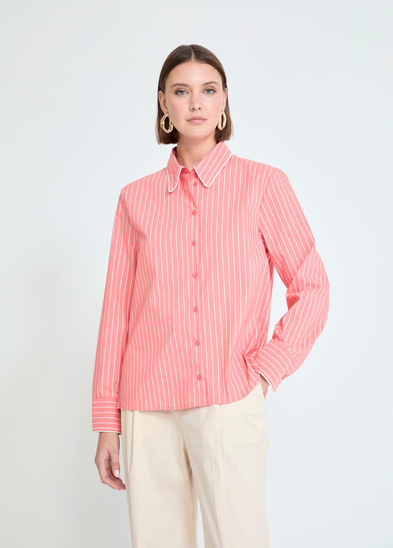 LOLA CASADEMUNT MS2615056 Camisa popelin rayas CRUDO-NARANJA